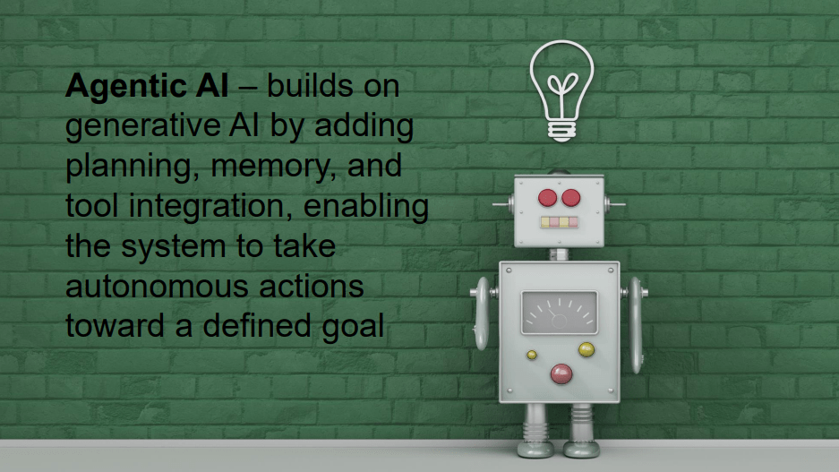 Agentic AI is when AI is set up to act autonomously like reminding patients to get vaccines, reminding to make appointments, or helping schedule appointments