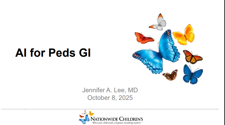 Recently, Dr. Jennifer Lee gave our group an excellent update on artificial intelligence (AI) for pediatric gastroenterology. My notes below may contain errors in transcription and in omission.
