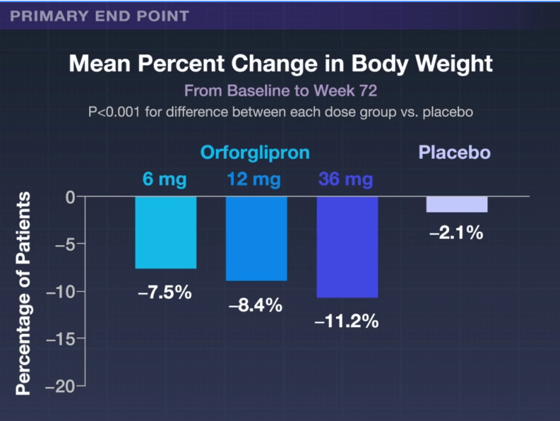 S Wharton et al. NEJM 2025; 303: 1796-1806. Orforglipron, an Oral Small-Molecule GLP-1 Receptor Agonist for Obesity Treatment