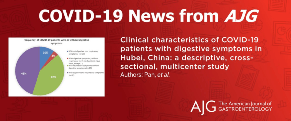 - Link to study: Pan L, et al., Clinical characteristics of COVID-19 patients with digestive symptoms in Hubei, China: a descriptive, cross-sectional, multicenter study, Am J Gastroenterol