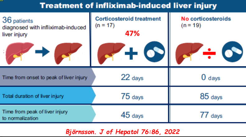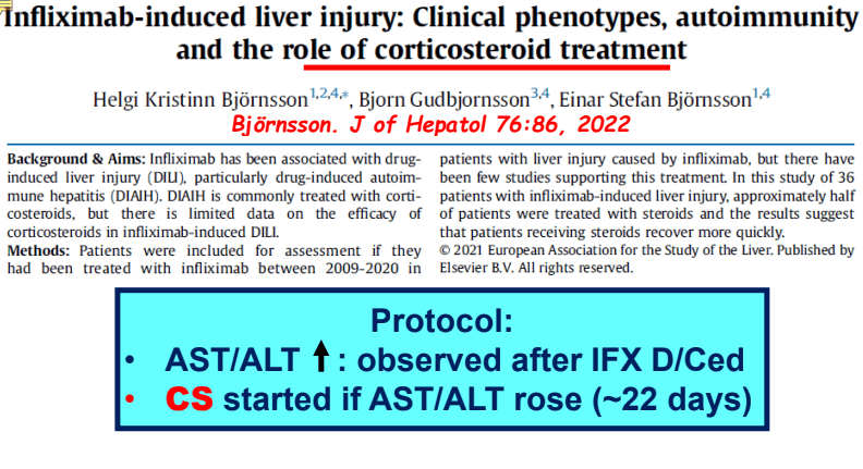 - Group 2 (n=22), infliximab was given for treatment of concomitant extrahepatic autoimmune diseases. Only 6 of these patients had active AIH at time of initiation of infliximab therapy