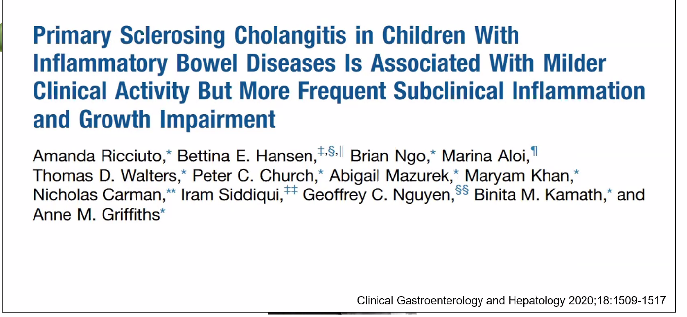 KO Hensel et al. J Pediatr 2021; 238: 50-56. Sclerosing Cholangitis in Pediatric Inflammatory Bowel Disease: Early Diagnosis and Management Affect Clinical Outcome