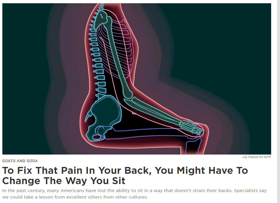 On the way to work, I heard this NPR story: To Fix That Pain In Your Back, You Might Have To Change The Way You Sit
