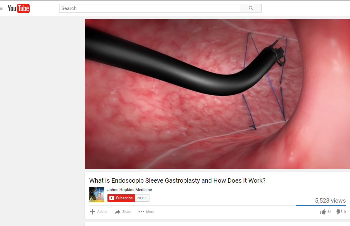 4 minute YouTube description from Johns Hopkins: What is Endoscopic Sleeve Gastroplasty and How Does it Work?