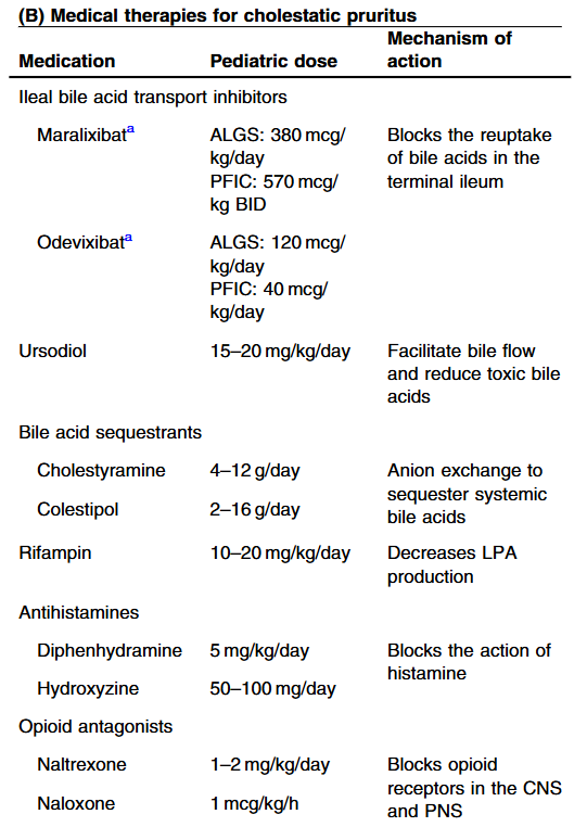 “Improvement in both pruritus and serum BAs/bilirubin levels has been associated with improved event‐free survival and 6‐year transplant‐free survival in ALGS patients treated with maralixibat. Additionally, this class of medication improved overall growth of the patient by improving mean height and weight Z scores that may be related to reduced impact of high serum bile acid levels on the growth axis although further studies are needed to better define the mechanism responsible for this out-come. This finding suggests these parameters could be used as surrogate end‐points for disease severity in diseases like ALGS or PFIC, where the time course to develop the need for LT commonly occurs over many years.”