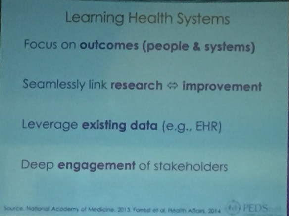 Christopher Forrest gave the keynote lecture on pediatric learning health systems. By collating data from large pediatric health systems, the researchers can determine more quickly how effective treatments are in all pediatric specialties.