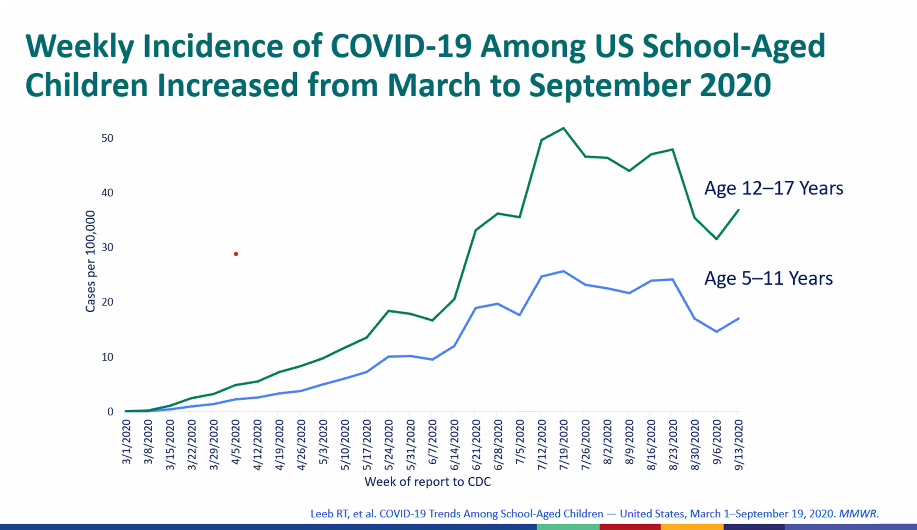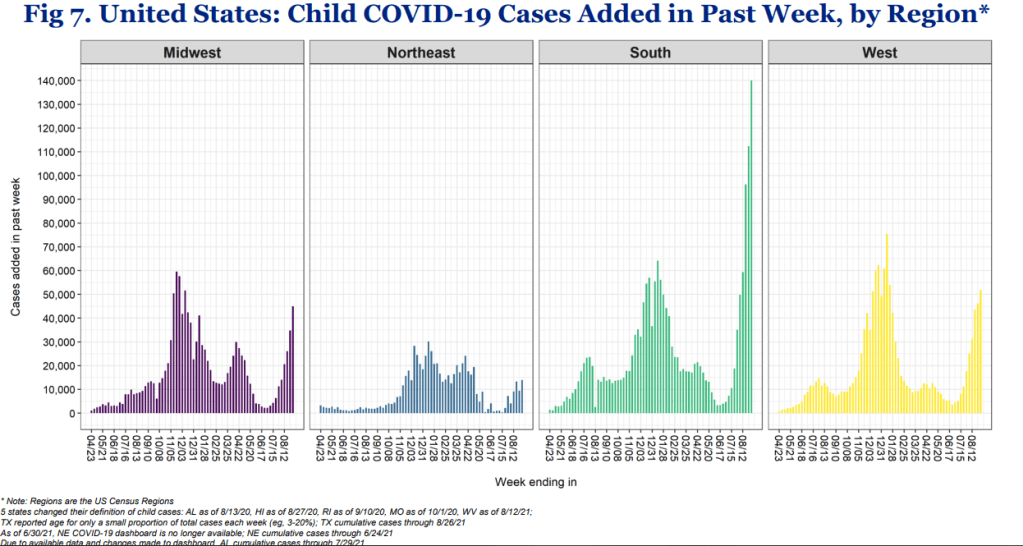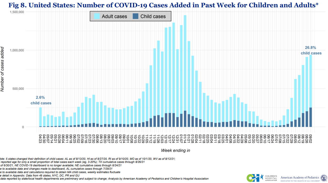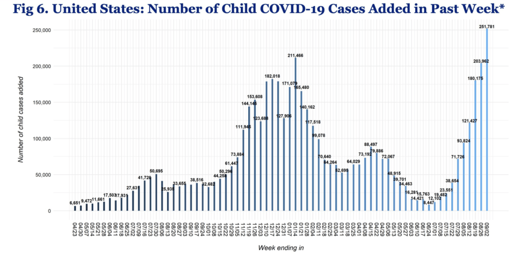 The latest report shows a rate of 680 COVID-19 cases per 100,000 children.