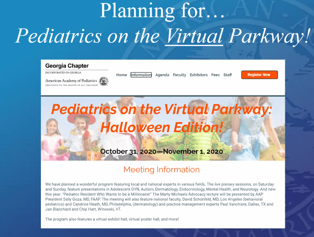 Update on E-Cigarettes Webinar*+: Wednesday, October 28 at 12:30 pm Please note new date! Here’s a chance to still register. First in a series of three webinars offered to Georgia Pediatricians on the growing epidemic of youth e-cigarette use Faculty: Alice Little Caldwell, MD, FAAP https://register.gotowebinar.com/register/8457518617359610381