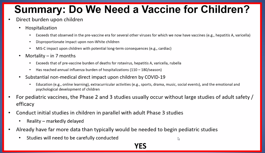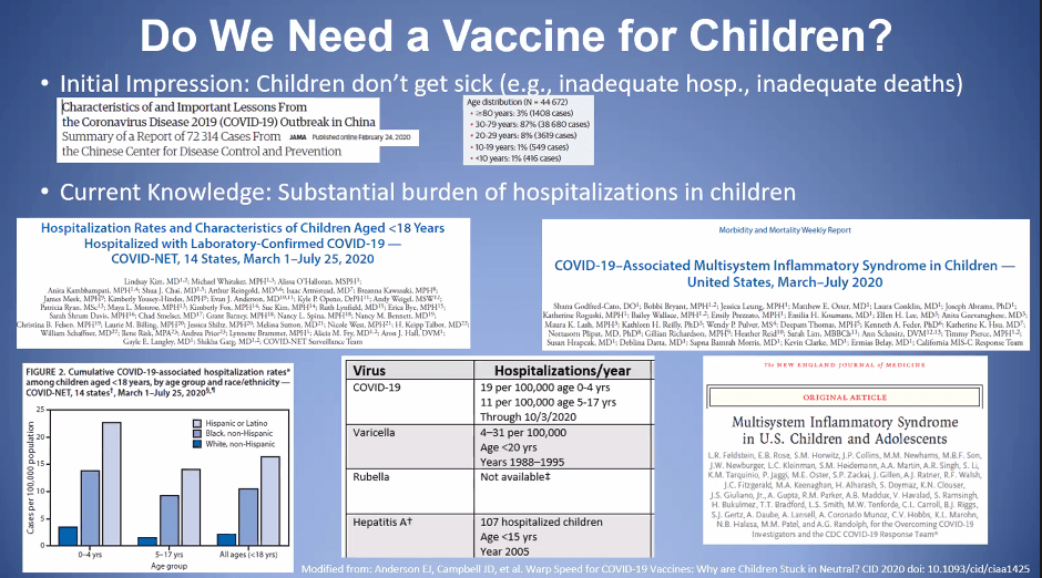 From Dr. Evan Anderson’s presentation to AAP Board MeetingDr. Anderson notes that COVID-19 mortality and morbidity IN CHILDREN exceeding other conditions with vaccines like Varicella and Influenza.Letter from AAP President to FDA (Dr. Hahn) and HHS (Alex Azar)