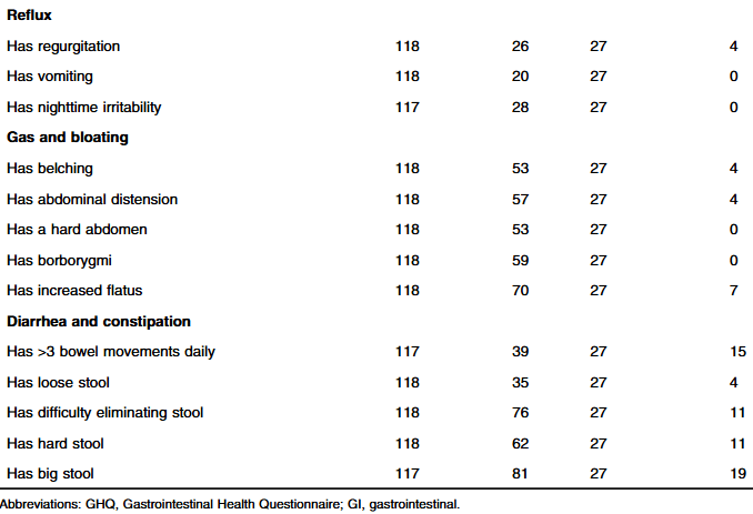 - 43% (n = 83) met Rome IV DGBI diagnostic criteria.