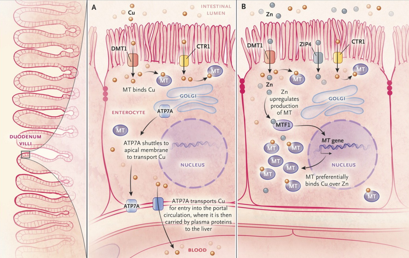 Ultimately she was diagnosed with copper deficiency which can result from zinc toxicity, “because zinc upregulates the protein to which copper binds in enterocytes, and an excess of zinc forces copper to be trapped in the enterocyte and unavailable for absorption.”