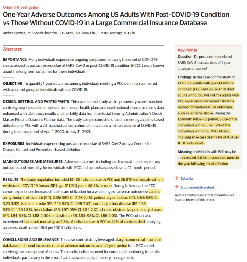 This case-control study leveraged a large commercial insurance database and found increased rates of adverse outcomes over a 1-year period for a post-COVID-19 cohort surviving the acute phase of illness. Methods: An index month was set by adding 30 days to the COVID-19 diagnosis date (this study looked at outcomes starting one month after diagnosis).