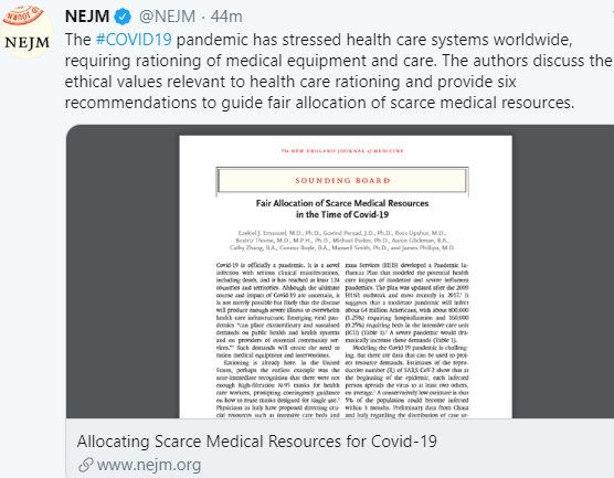 Full Link NEJM 2020 (Ezekial J Emmanuel et al): Fair Allocation of Scarce Medical Resources in the Time of Covid-19