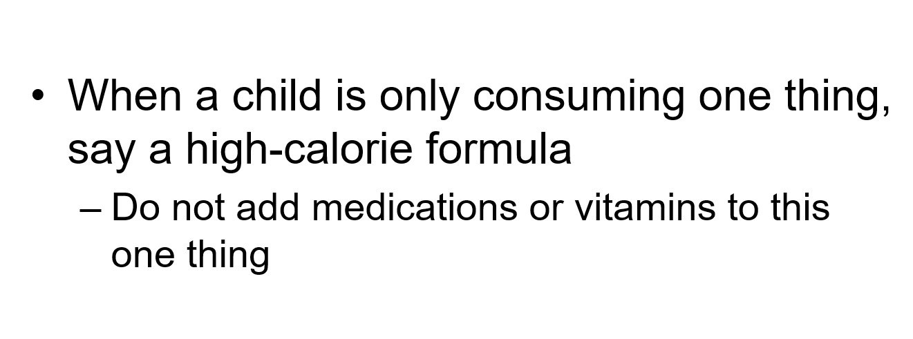 - Avoid adding medication/vitamins to the ‘one food/formula that child will take.’ He may stop taking that food/formula too