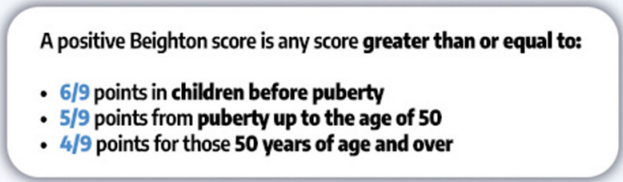 - #3: Gastroenterologists seeing patients with DGBI should inquire about joint hypermobility and strongly consider incorporating the Beighton score for assessing joint hypermobility into their practice as a screening tool; if the screen is positive, gastroenterologists may consider applying 2017 diagnostic criteria to diagnose hEDS (https://www.ehlers-danlos.com/wp-content/uploads/2017/05/hEDS-Dx-Criteria-checklist-1.pdf) or offer appropriate referral to a specialist where resources are available.