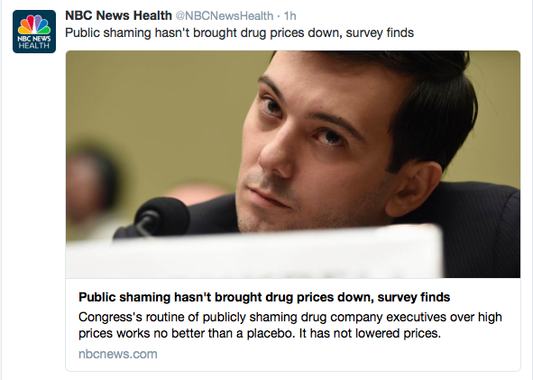 From NBC News: Congress Doesn’t Scare Drug Execs Into Lowering Prices