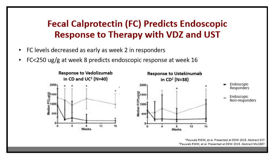 For Crohns’ disease , Vedolizumab also works in Crohn’s disease, but it takes time (Sands et al: Gastroenterology 2014 147:618‐627)