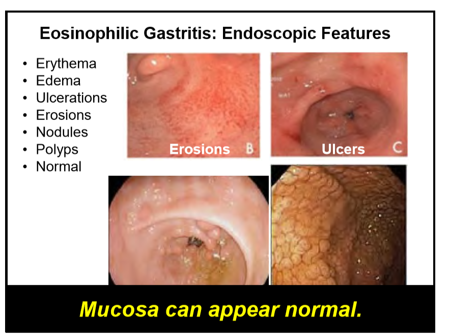 • 37% of patients had evidence of eosinophilic inflammation in at least one section of the GI tract.