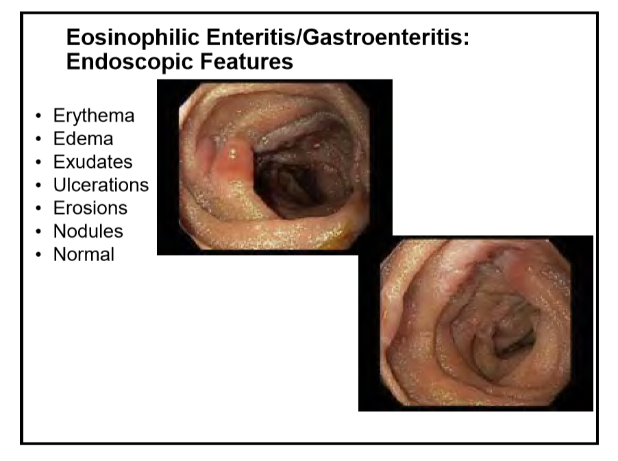 • The term “eosinophilic gastroenteritis” is no longer preferred as the overall name (but can be used to indicate involvement of both the stomach and small bowel)
