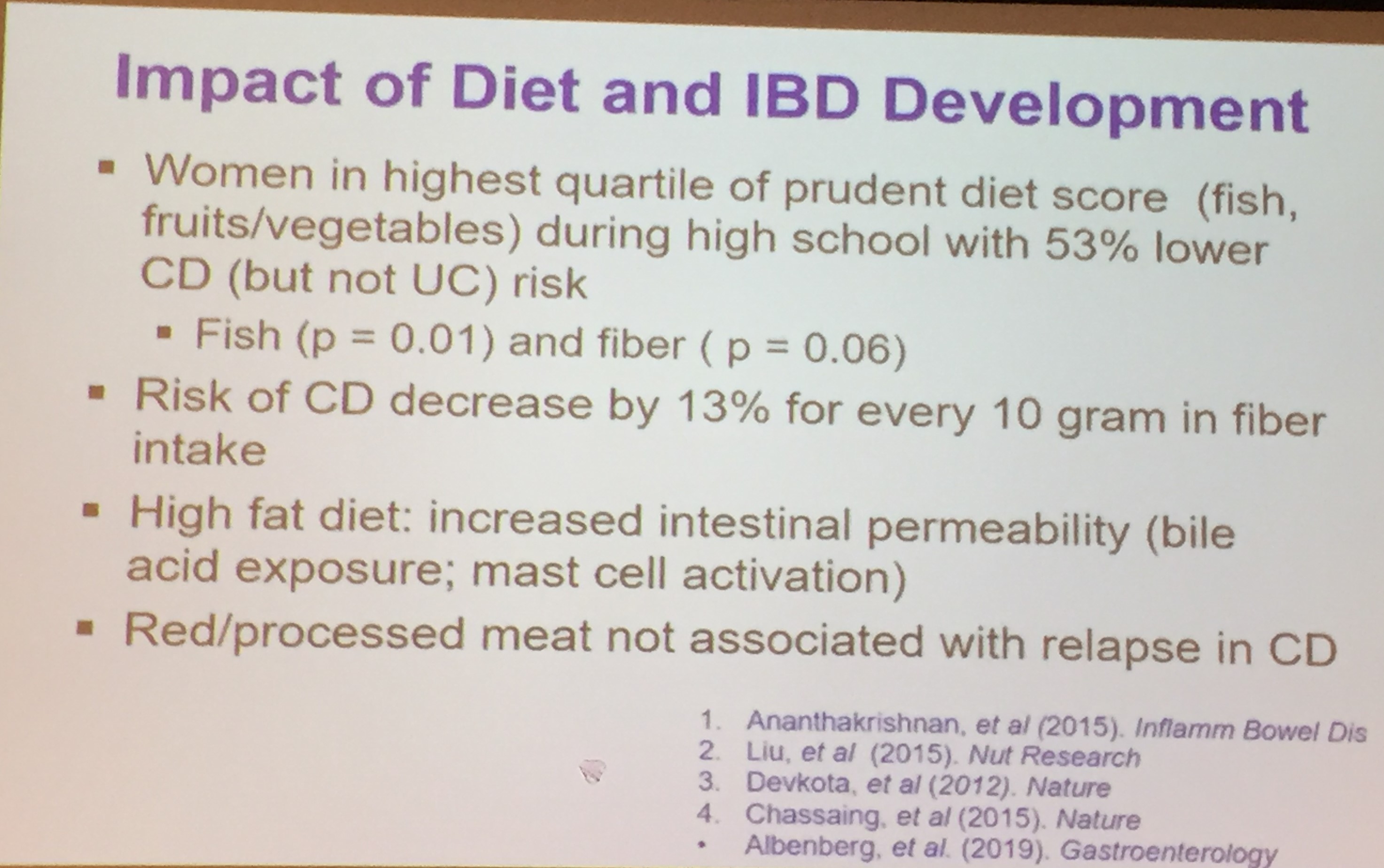 AGA has a summary and video here: What you need to know about diet and nutritional therapies for IBD patients