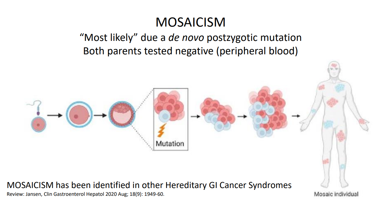 Case#4 presented a 12 yo with neurofibromatosis (NF-1) who developed CRC and ultimately diagnosed with CMMR-D. This is a highly aggressive cancer susceptibility disorder with a very poor prognosis (see post: Are you familiar with CMMR-D?)