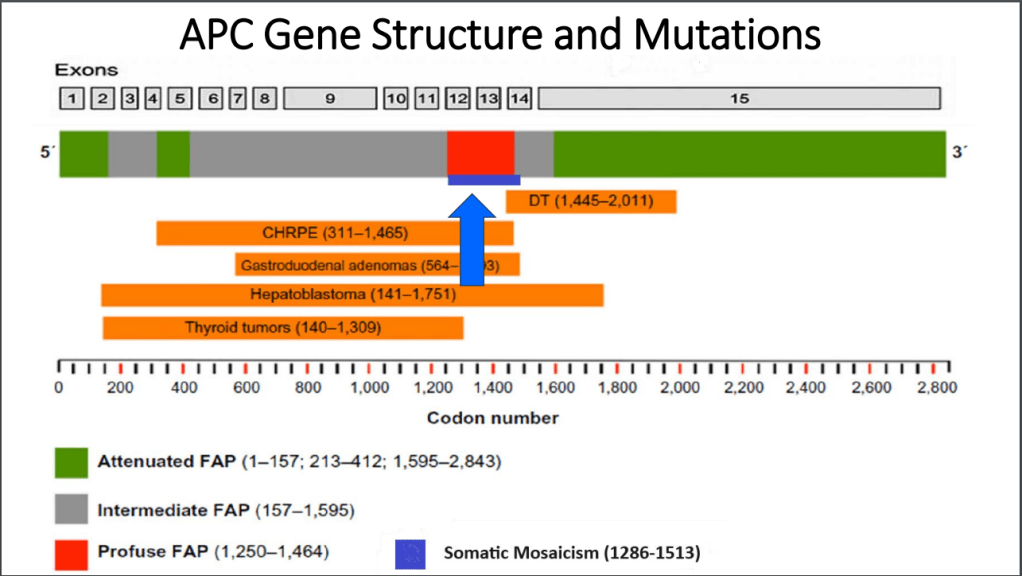 With FAP, the severity is related in part to the specific mutation. Mutations in the mutation cluster region are associated with an aggressive phenotype and mutations causing attenuated FAP are less aggressive