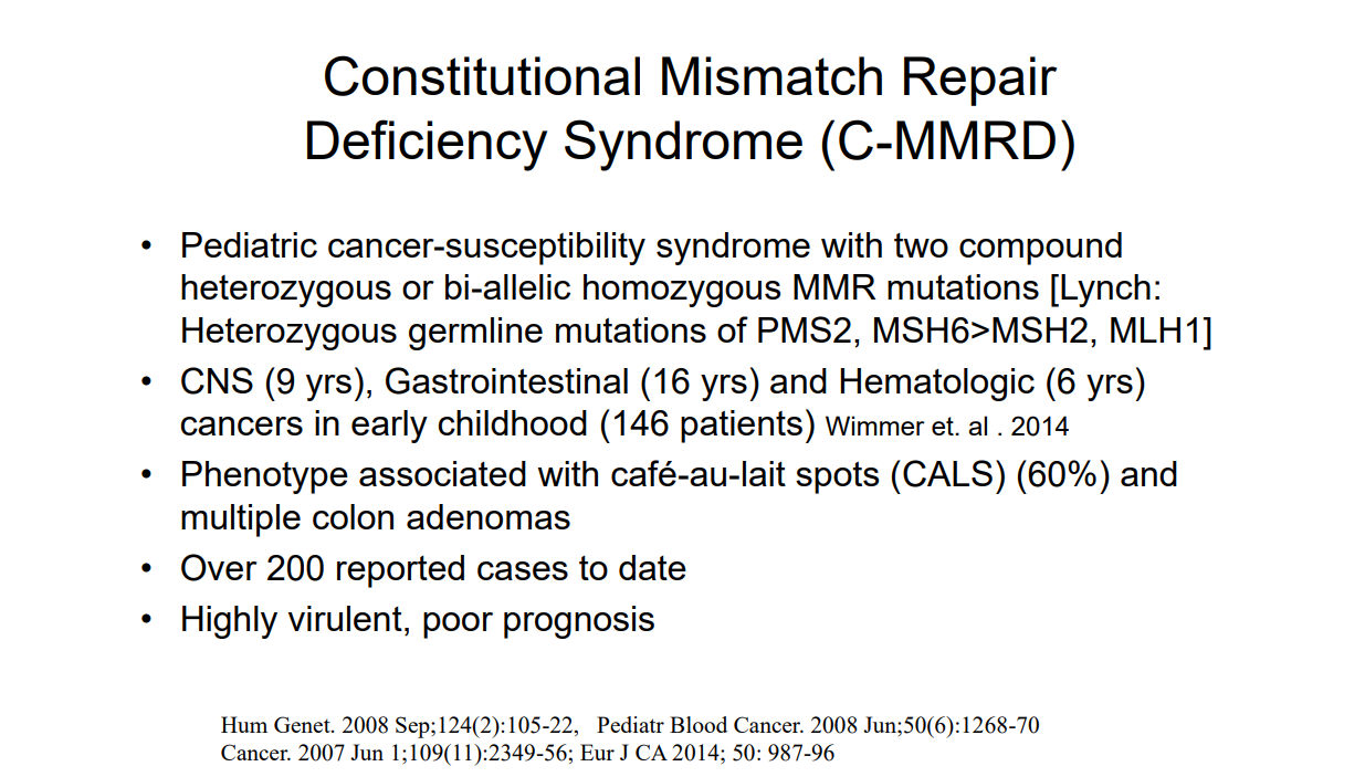Are You Familiar with CMMR-D? The term CMMR-D refers to constitutional mismatch repair deficiency. This occurs when an individual inherits two MMR gene defects (rather than one gene defect in Lynch syndrome); with CMMR-D screening recommendations include yearly endoscopic evaluation beginning at age 3 years or at diagnosis.