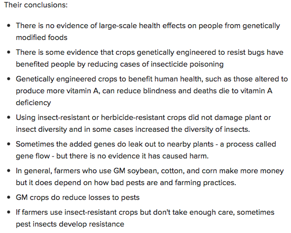 Here’s a link to NBC report on National Academies of Science review of Genetically Modified & Genetically Engineered crops: Genetically Modified Crops Are Safe