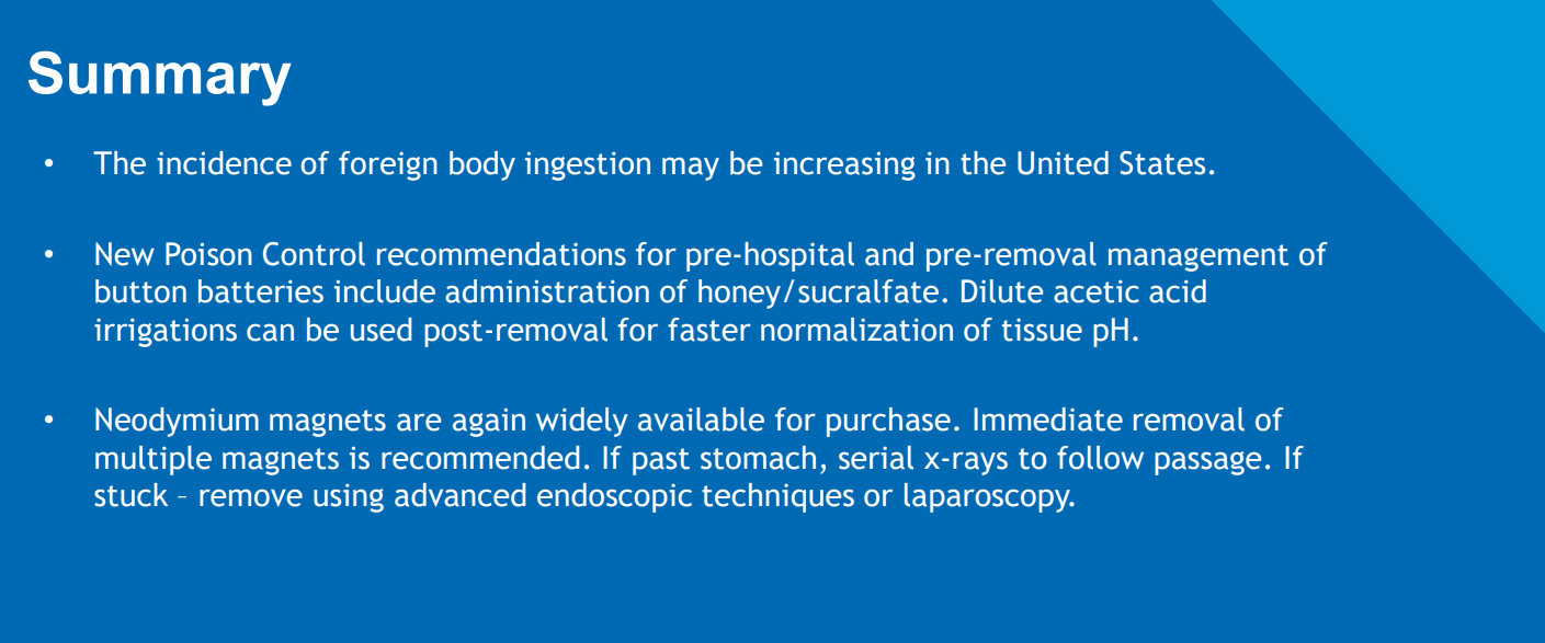 A recent report from Nationwide Childrens, How Sweet It Is: Honey Attenuates Button Battery-Induced Esophageal Damage, highlights two important advances in button battery management that are now incorporated into the new button battery guidelines: