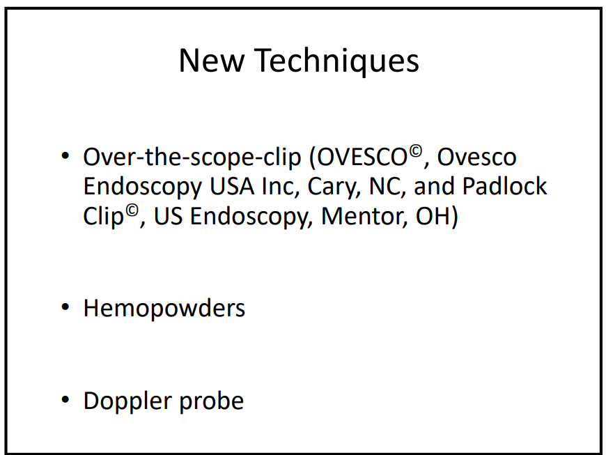 This talk had some terrific videos (not available in syllabus) and useful practical points.  For example, with cautery, the speaker recommended not just quickly taping the lesion, count for several seconds when applying.  For hemospray, the speaker considers this technically much easier but is using this mainly as a backup option.