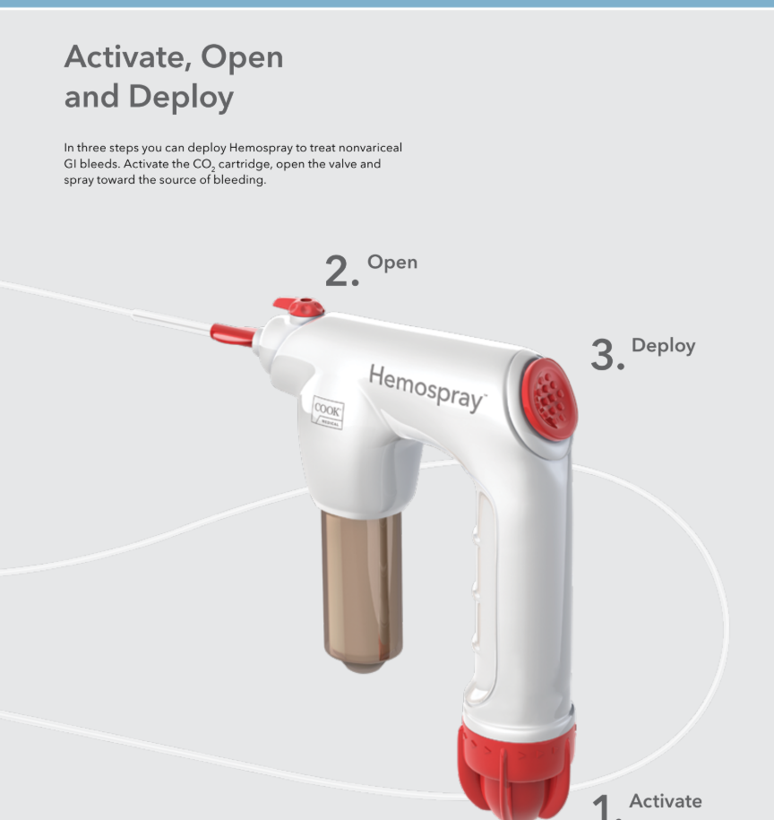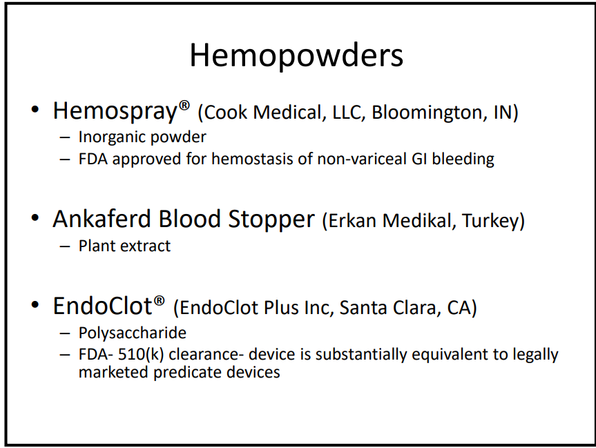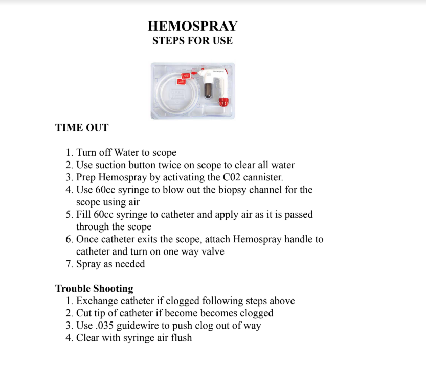 Here are two screenshots (not from lecture) which provide information from manufacturer on Hemospray use (link to PDF on Hemospray Manufacturer’s PDF on Hemospray)