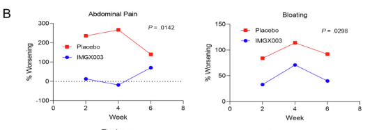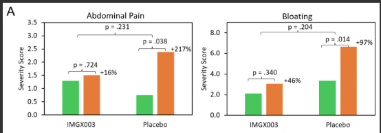 In both the placebo and IMGX003 groups, there was an increases in symptoms, but this was blunted in the treated group–Figure 2: