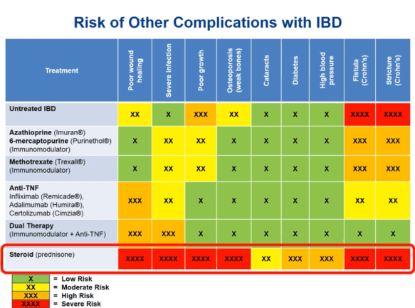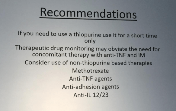 In the section on other complications, the presentation suggests that there may be impaired wound-healing with anti-TNFs. I think this risk is overstated in this slide. Also, I think the risk of severe infection with thiopurines is a little bit higher than stated; though, this can be mitigated with careful monitoring.