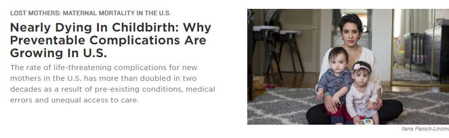 An update on this topic from NPR: Full Link Nearly Dying In Childbirth: Why Preventable Complications Are Growing In U.S.