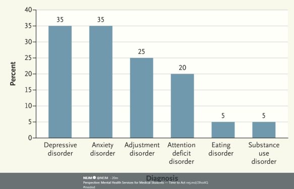It is well-recognized that there is a high rate of burnout and even suicides among physicians. The concern regarding mental health extends to medical students. According to a recent commentary (JF Karp, AS Levine. NEJM 2018; 1196-8), “despite entering medical school with relatively good mental health, medical students become depressed, burned out, and suicidal at alarming rates.” This is thought to be due to “demanding schedules, cost, and stigma” to obtain mental health services.