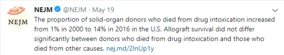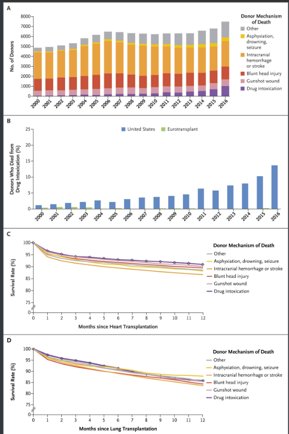 A letter to the editor (MR Mehra et al. NEJM 2018; 378: 20: 1943-45) provides a perspective on the increasing availability of organs for transplantation from drug overdoses/opioid epidemic from 2000 to 2016.