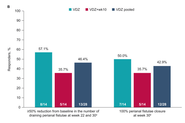 - Perianal fistulas: “Overall, there is less evidence to support adalimumab use over infliximab for treatment of perianal fistulas. It is possible that adalimumab may have lower efficacy for perianal fistula.105 However, it is unclear if this is inherent to adalimumab, or if it relates to less frequent TDM or less frequent dose escalation in practice.”