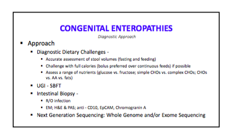 One lecture that I will highlight with a few slides is from Dr. Martin Martin (pg 53-62) which emphasizes a new model for evaluating neonatal intestinal failure/congenital diarrhea by using whole exome sequencing –see slides below.