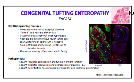 • TTC7A mutations (identified by whole exome sequencing) cause apoptotic enterocolitis, intestinal atresias, and SCID (severe combined immunodeficiency) –may not benefit by stem cell transplantation