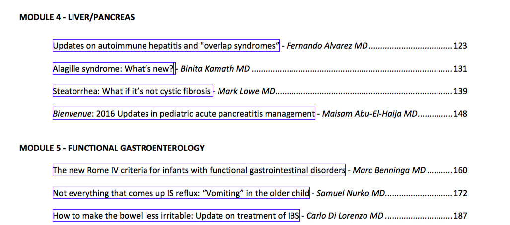 I’ve attached (with permission) the syllabus from the World Congress 2016 Postgraduate Course: 2016-world-congress-postgraduate-course-syllabus