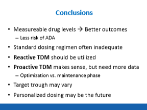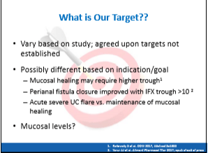 - In patients who resume infliximab, the authors advocate for an initial induction of 0, 4, and 8 weeks. The presence of antidrug antibodies at week 2 “precludes drug administration and alternative agent should be started.”