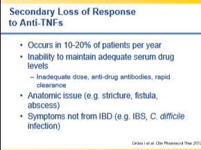 - Careful followup is recommended if a patient elects to stop biologic therapy. “CD and UC are progressive relapsing conditions…and approximately 80% of subjects” require re-initiation of biologic therapy with 7 years.”