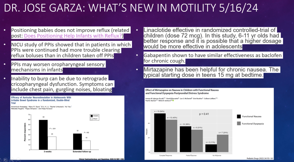 The first study, a systemic review and meta-analysis of PPIs in inducing remission for eosinophilic esophagitis (EoE). In all 33 studies (11 prospective) of adults and children were included with 619 patients. Key findings: