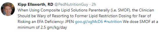 - SMOFlipid is the most frequently used lipid at Seattle. It can be given in higher doses than Omegaven which is important nutritionally; omegaven is generally given at only 1 to 1.5 mg/kg/day and used for treatment of IFALD.