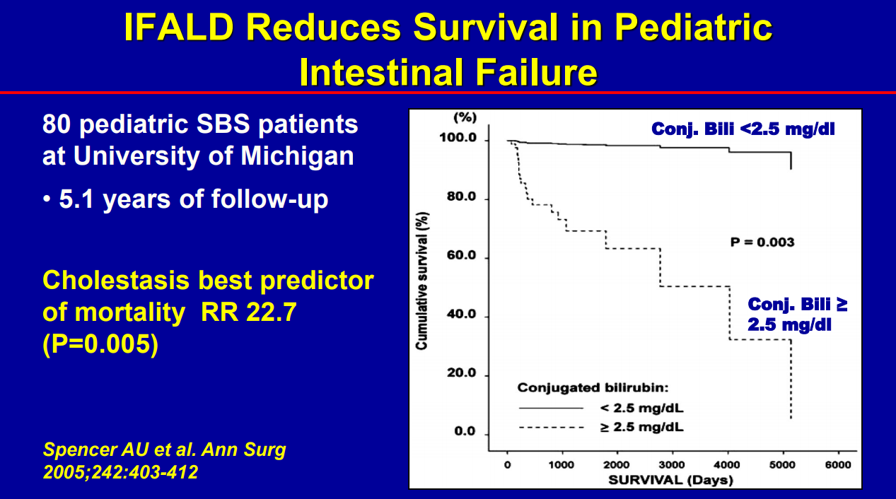 - Long term outcomes are just as good with chronic TPN as with intestinal transplantation. So, referral generally needed based on complications like losing central access (3 of 4 upper central sites) or progressive liver disease.
