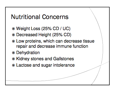 - Before development of IBD, studies have shown lower risk of IBD “among people who consume more fruits and vegetables, and a higher risk in people who consume less of these and more animal fats and sugar.”