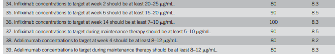 - It was recommended that treatment discontinuation should not be considered for infliximab or adalimumab until a drug concentration of at least 10–15 mg/mL was achieved