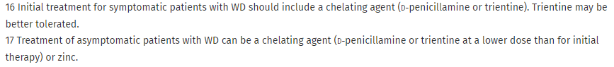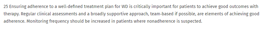 My take: This is a useful guidance and the tables/algorithms should help with both diagnosis and treatment adjustment. In my limited experience with WD, I have had a lot of difficulty with adherence to treatment in the small sample of patients under my care.