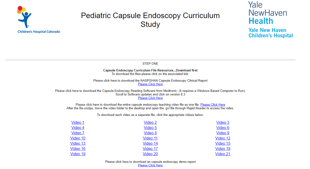 Website for VCE Training: Pediatric Capsule Endoscopy Curriculum Study